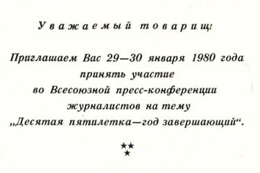 Приглашение дня: Всесоюзная пресс-конференция